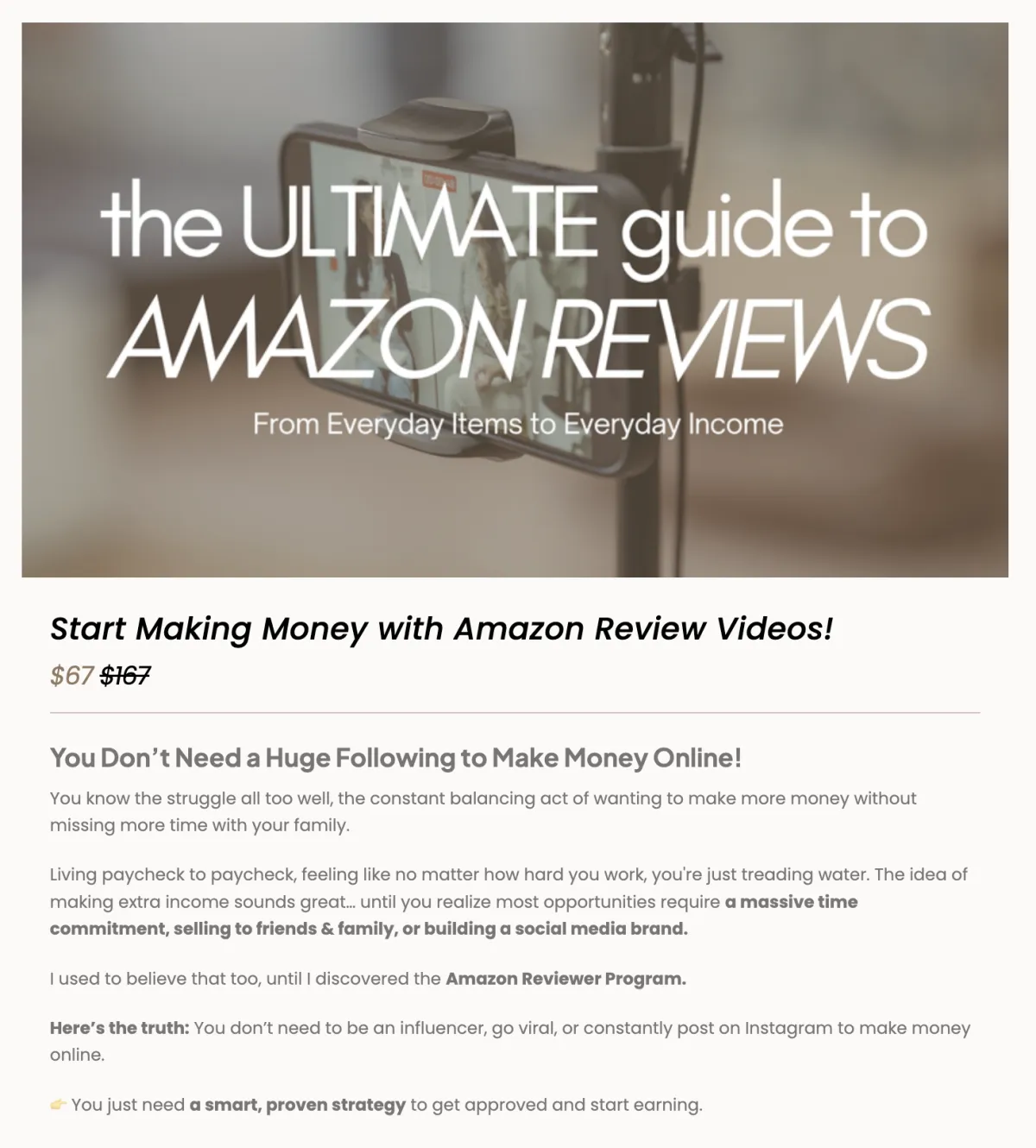 This course was built by a friend of mine to help stay-at-home moms make extra money online with Amazon review videos... But I’m definitely not a stay-at-home mom—